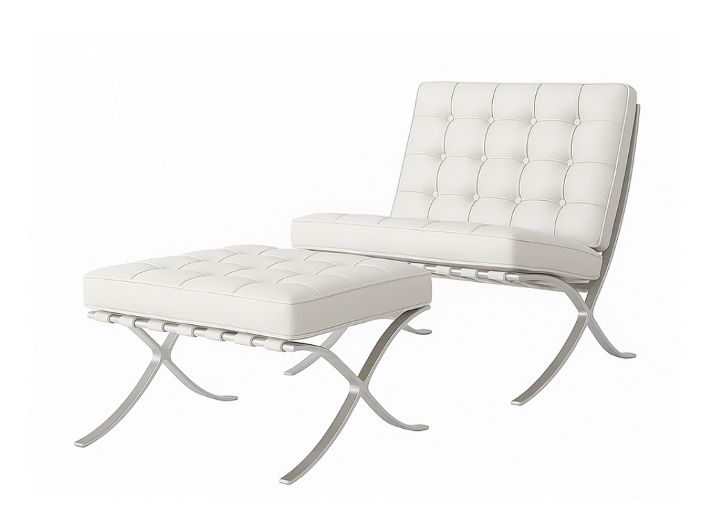 Bestel vandaag nog en ontdek waarom onze Barcelona Chair met hocker wit de favoriet van uw interieur zal worden!